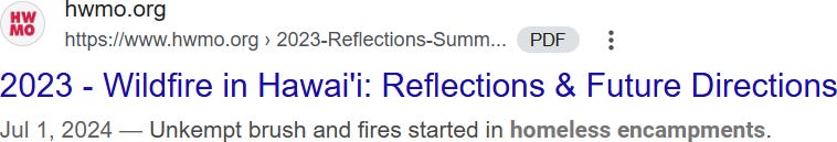 The Hawaii Wildfire Management Organization has no search engine, so I had to Google this reference to homelessness on their site.