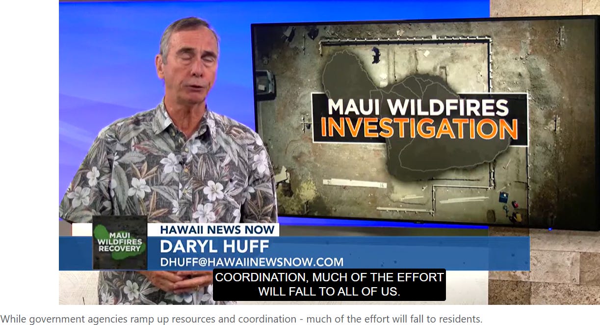 Look at how serious Hawaii Nausea reporter Daryl Huff looked while the captions for anchor Mahealani Richardson saying “much of the effort will fall to all of us” spilled over into his segment five seconds later.