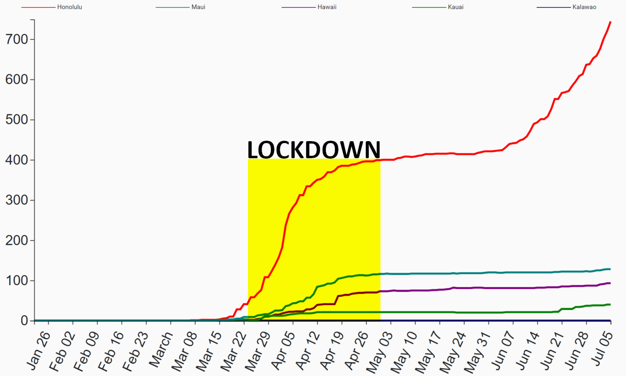 Maskless Mayor I’s lockdown failed by his own bogus metric of ‘cases’ which went way up in his domain (the red line below) during those five weeks. Note the lack of a rise of ‘cases’ in May after the end of the lockdown.